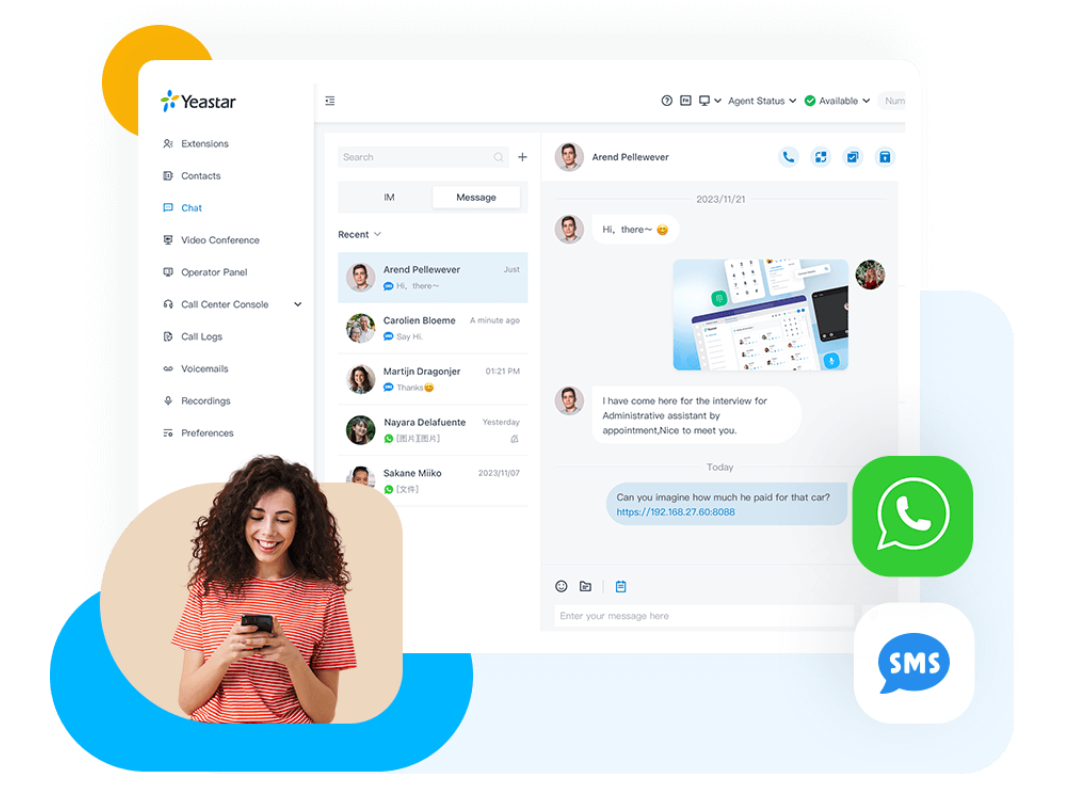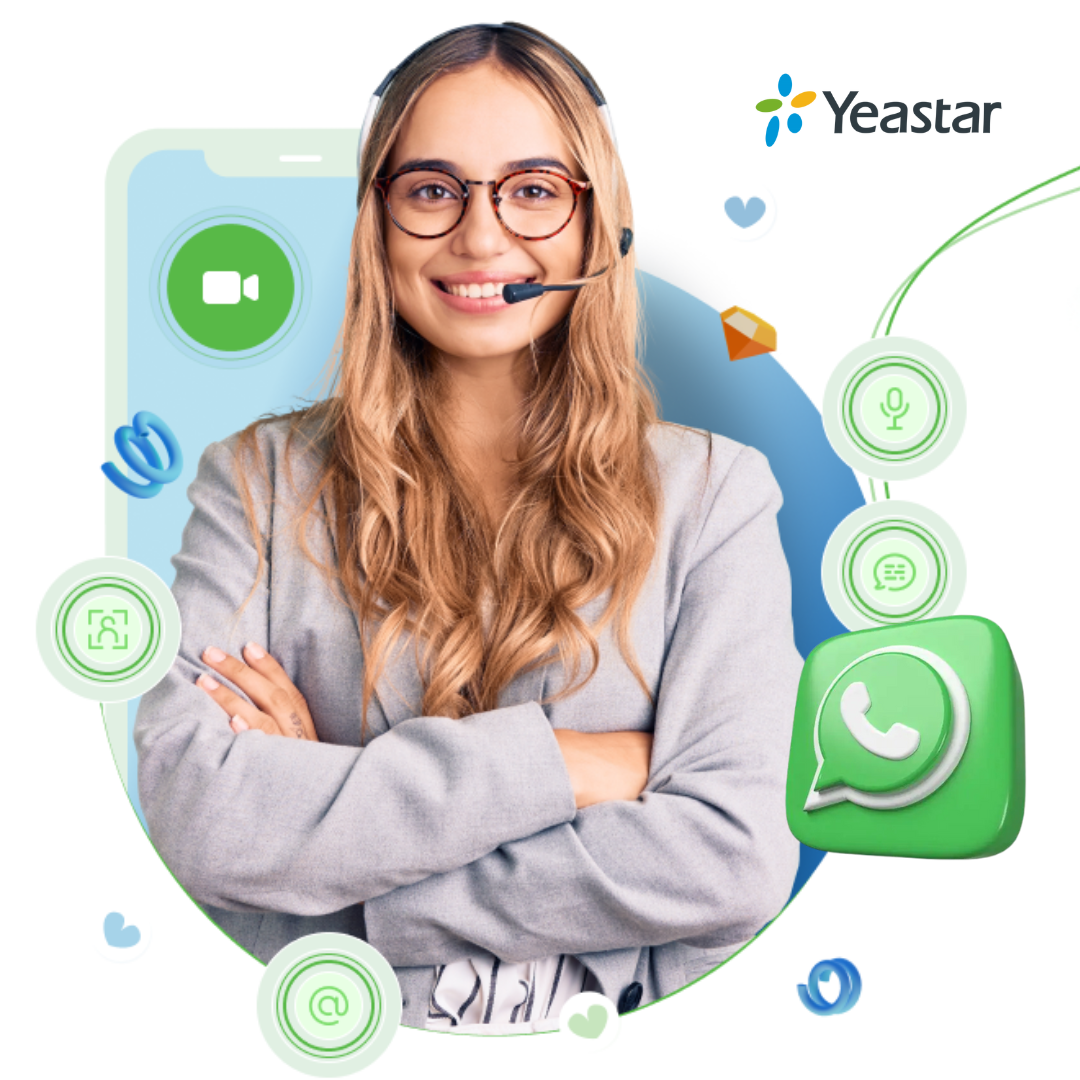 Dentro do omnichannel Yeastar, você pode rodar um chatbot que inicia a interação — seja via WhatsApp ou webchat — e, caso necessário, escalar para atendimento humano ou atendimento por voz.