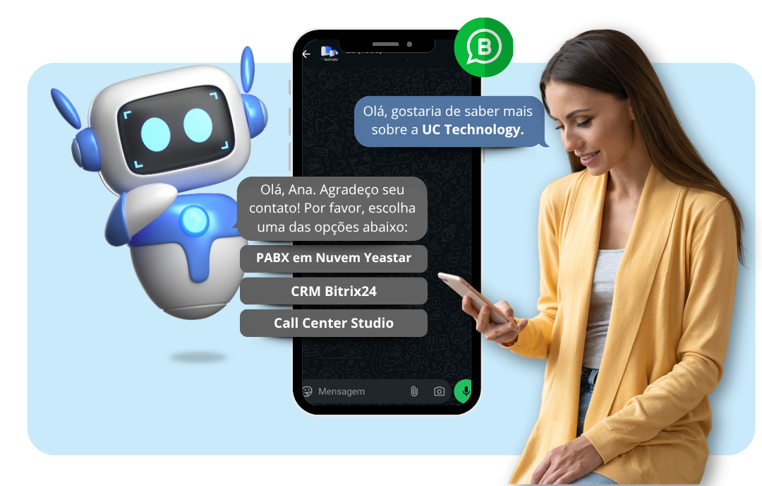 Com o chatbot integrado ao PABX, a jornada do usuário se torna contínua e personalizada.