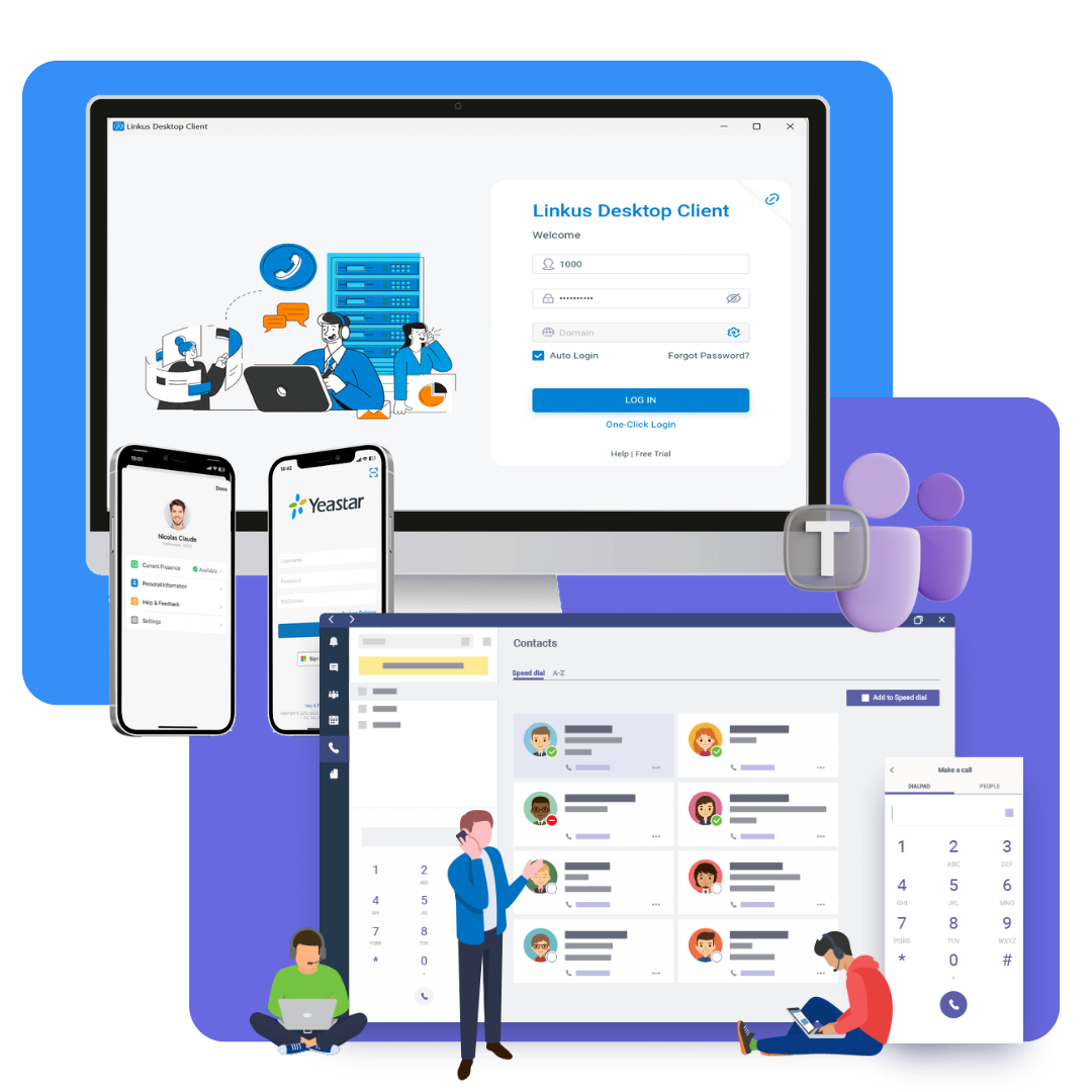 O PABX Yeastar oferece o Softphone Linkus UC Clients, sendo uma solução completa de comunicação empresarial que oferece recursos avançados como integração de voz, mensagens e videoconferência, para manter sua equipe conectada de qualquer lugar. Através do Linkus é possível acessar todas essas funções em diversos dispositivos, incluindo navegadores da Web, via extensão do Google Chrome e Smartphones. Tudo isso para facilitar as comunicações e colaborações em tempo real dentro e fora da empresa, combinado com a solução de PABX Yeastar, oferecemos uma plataforma completa para melhorar a comunicação interna e externa da sua empresa, com facilidade e eficiência em todos os processos.
